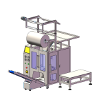 - Przenośnik taśmowy w celu transportowania gotowych woreczków np. do zbiorczych kartonów lub skrzynek.